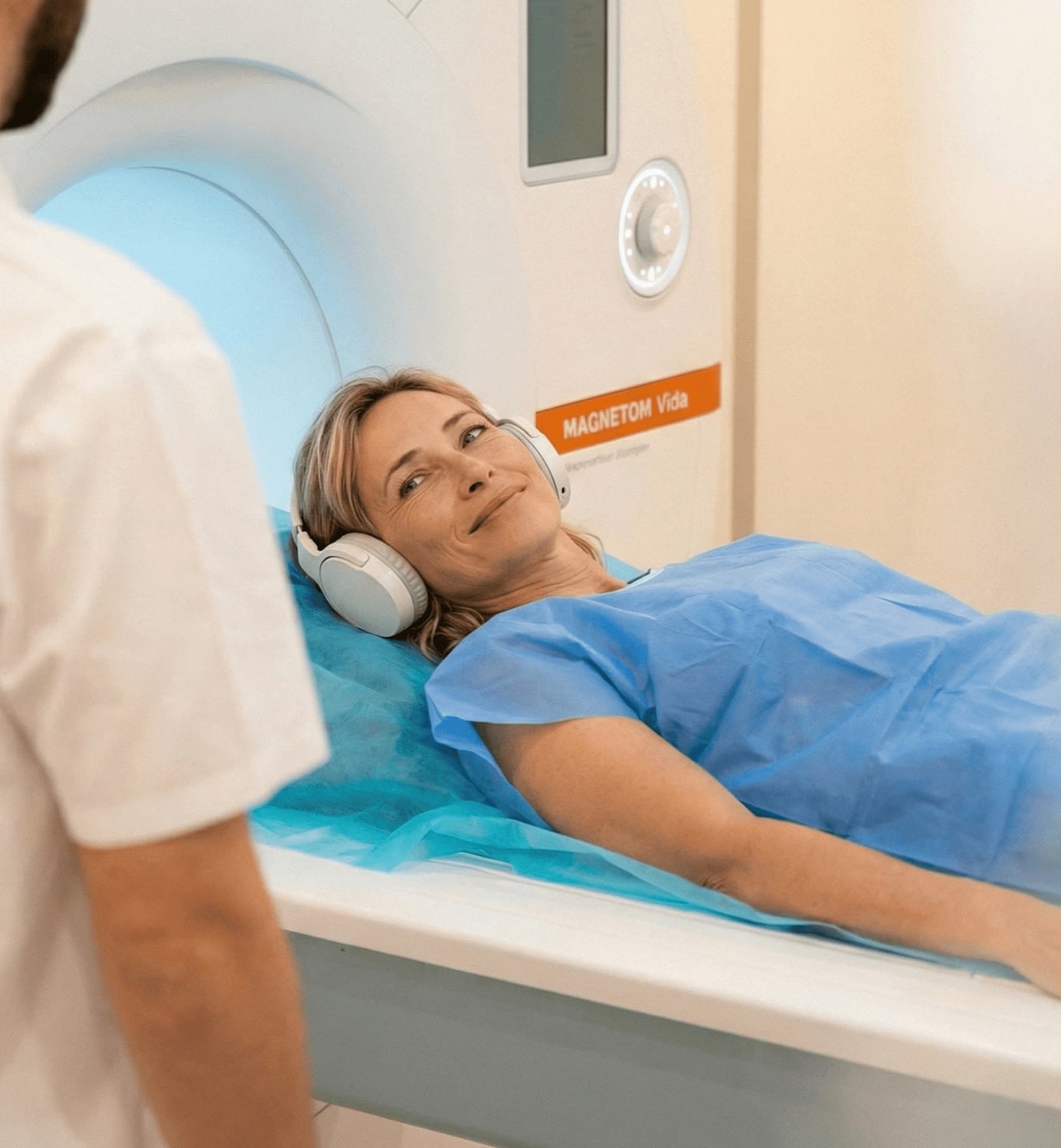 Bei Ihrer Ankunft werden Sie begrüsst und wechseln in einen Kittel. Während des 35-minütigen MRIs können Sie Musik hören oder sich entspannen.